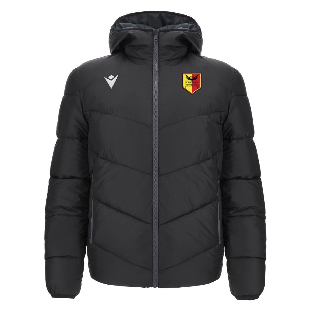 Gequild jas met capuchon gemaakt van ultralichte ulight vezelstof. Met een full -length diecast centrale zip compleet met een ritssluiting met de rubberised Macron Hero. Zakken met diecast ritsen. De manchetten en vouwkap in kraag zijn lycra -rand.